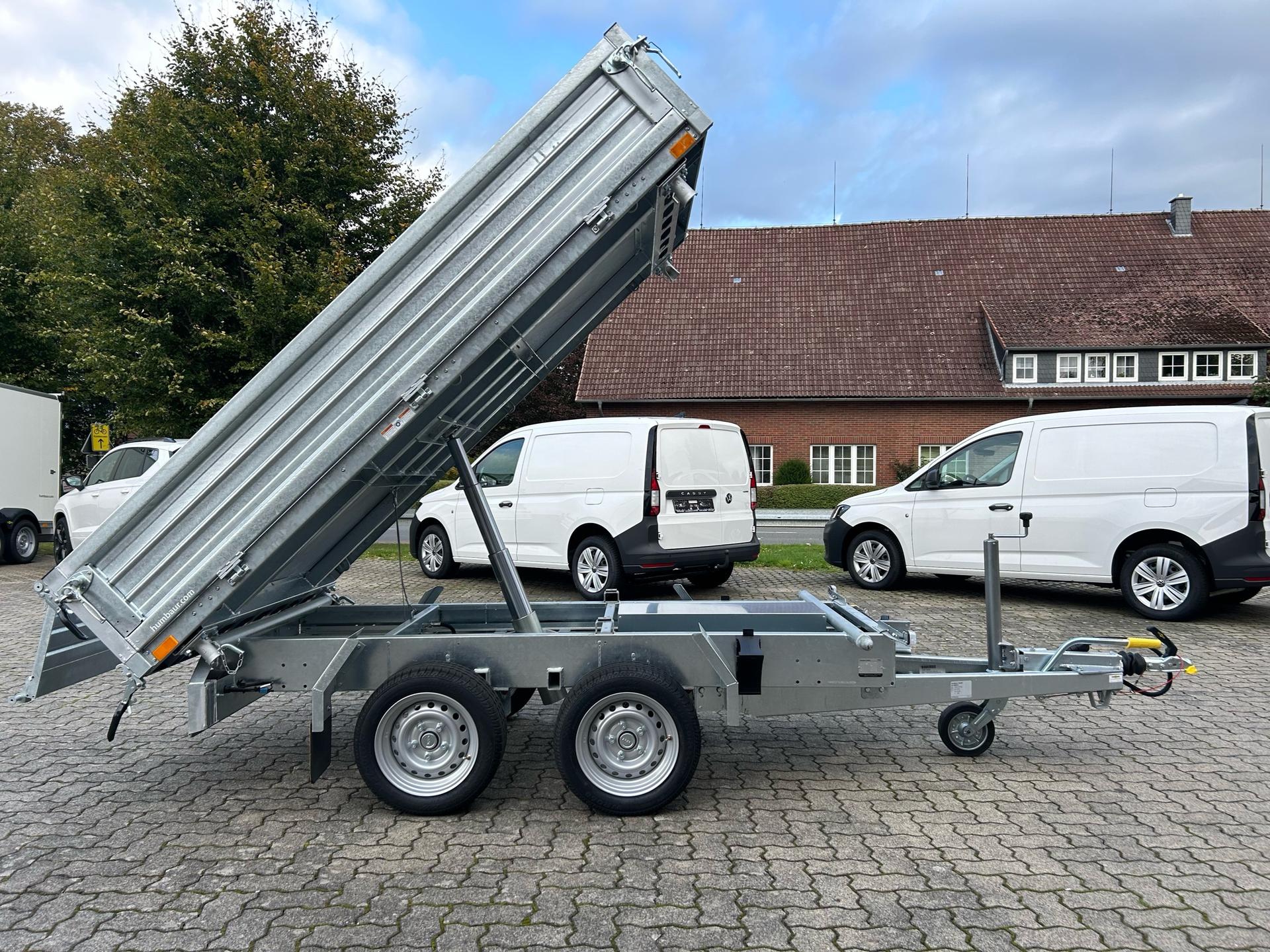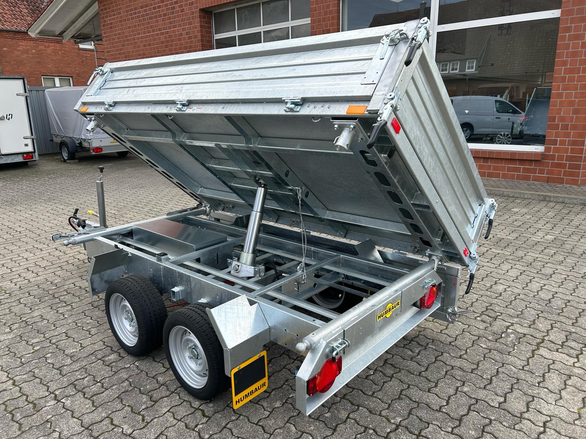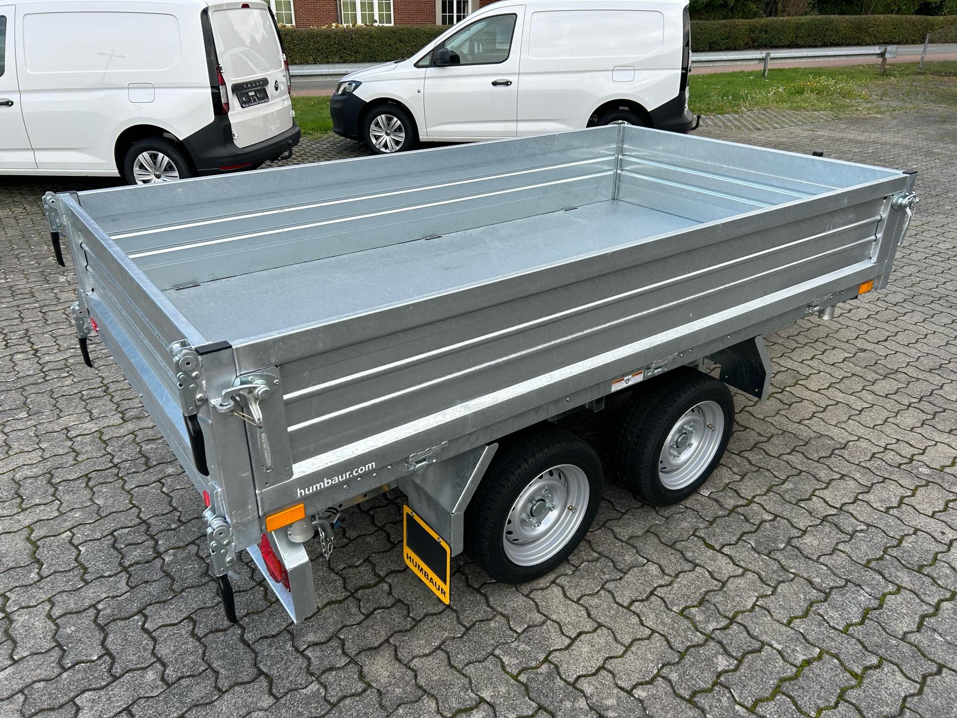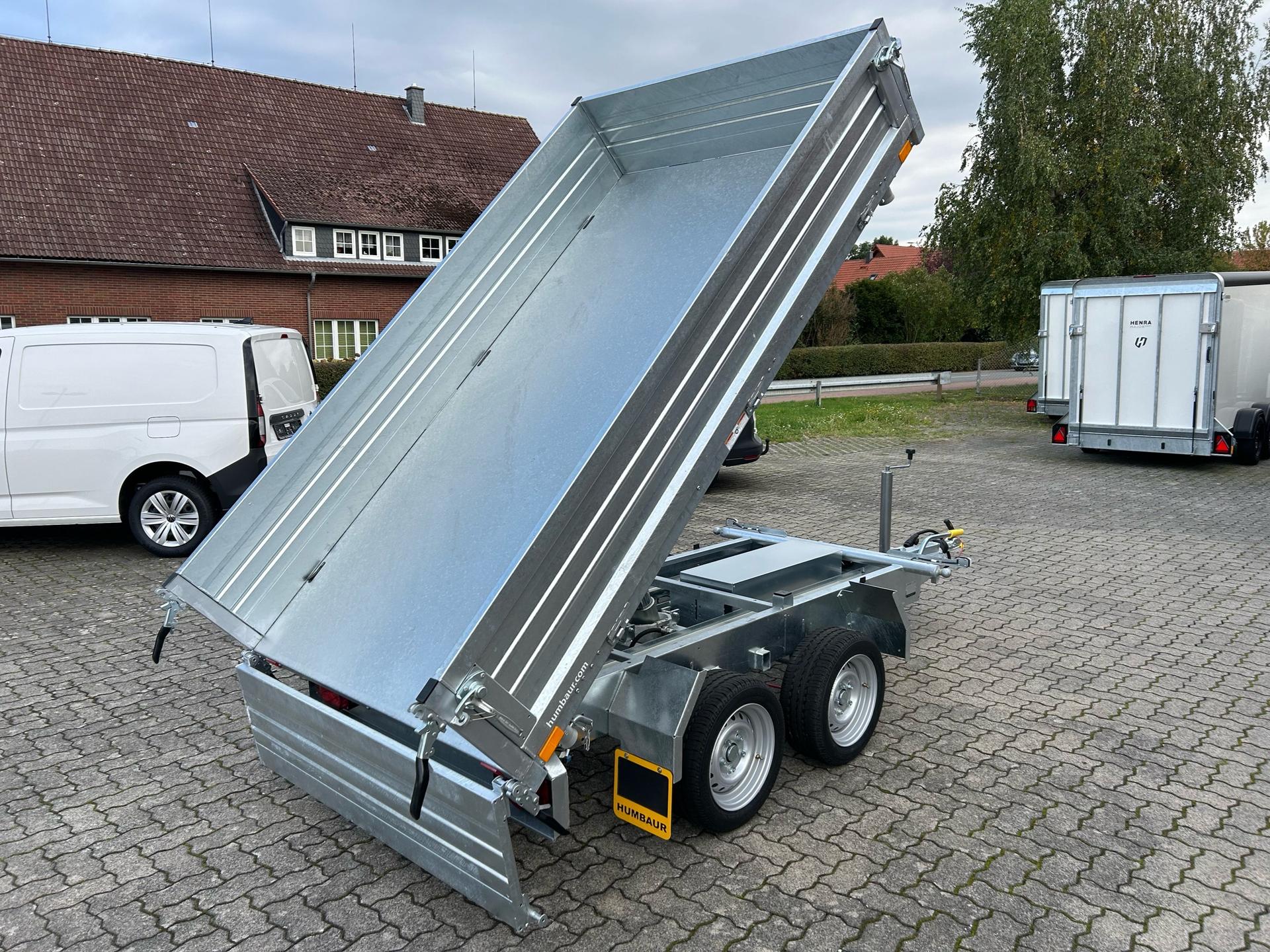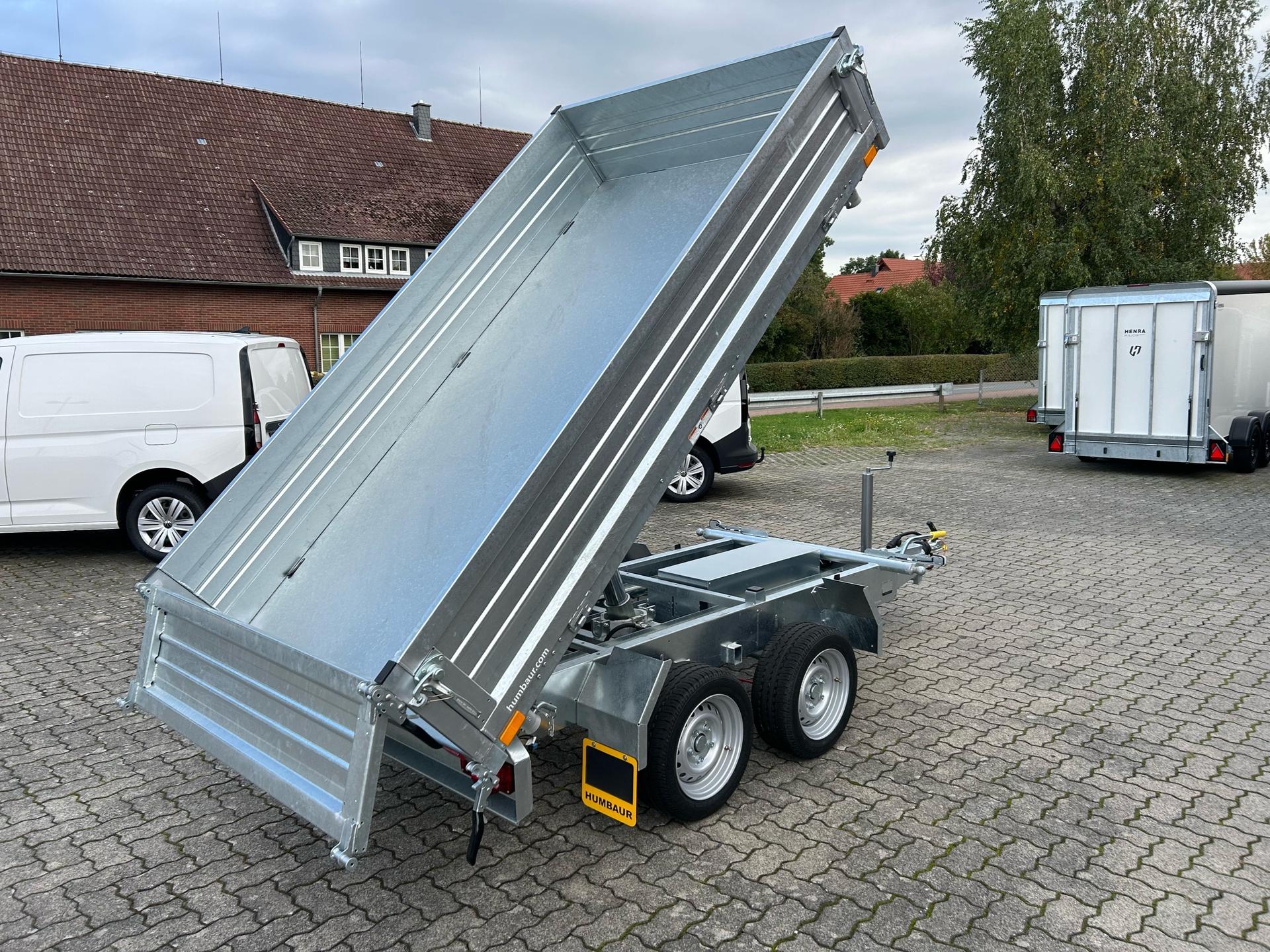 Humbaur HTK 2700.27 ProSteelDreiseitenkipperPKW AnhängerAlter: Neu (Produktionsjahr: 2025)2 Jahre Hauptuntersuchung ab dem Tag der ErstzulassungInkl. Zulassungspapiere (Kfz-Brief / Zulassungsbescheinigung Teil 2 und COC)Verfügbar ab: Sofort (auf Lager)!Finanzierung über unsere Partnerbanken möglich!Technische DatenZulässiges Gesamtgewicht: 2.700kgLeergewicht: ca. 730kgNutzlast: ca. 1.970kgAchsenanzahl: 2Laderaumlänge: 2.660mmLaderaumbreite: 1.490mmLaderaumhöhe: 400mmBremsenart: Gebremst, AuflaufbremseFahrgestell: Hochlader (Räder unter Aufbau), GummifederachsenElektrik: 12V, 13 poliger SteckerReifengröße: 195/50 R13SonderausstattungFuhrmann Profil-Bordwände aus verzinktem StahlblechKippfunktion durch Hydraulikpumpe (elektrisch / Elektropumpe)Not Hydraulikpumpe (mechanisch / Handpumpe)AusstattungRampenschächteStahlbodenplatteBordwände klapp- und abnehmbarBordwand hinten als Klappe oder PendelklappeAutomatisches StützradZurrösenRahmen geschweißt und verzinktV-DeichselAL-KO oder Knott Achsen und BremsanlageZubehör (aufpreispflichtig)100km/h Bescheinigung inkl. Nachrüstung 4x RadstoßdämpferAlu-AuffahrrampenAlufelgen Silver / BlackAbstellstützenAnhängernetzAnhängerschlossBluetooth Empfänger für ElektropumpeHöhenverstellbare DeichselRädersatz 185 R14CReserverad 195/50 R13 inkl. HalterSchlepperanschluss für HydraulikpumpeSpanngurtFahrzeuganlieferung deutschlandweitZulassung deutschlandweitÜberführungskennzeichen (5 Tage gültig)HinweisGewichtsangaben können je nach Ausstattung abweichen; Irrtümer, Zwischenverkauf und Änderungen vorbehalten!