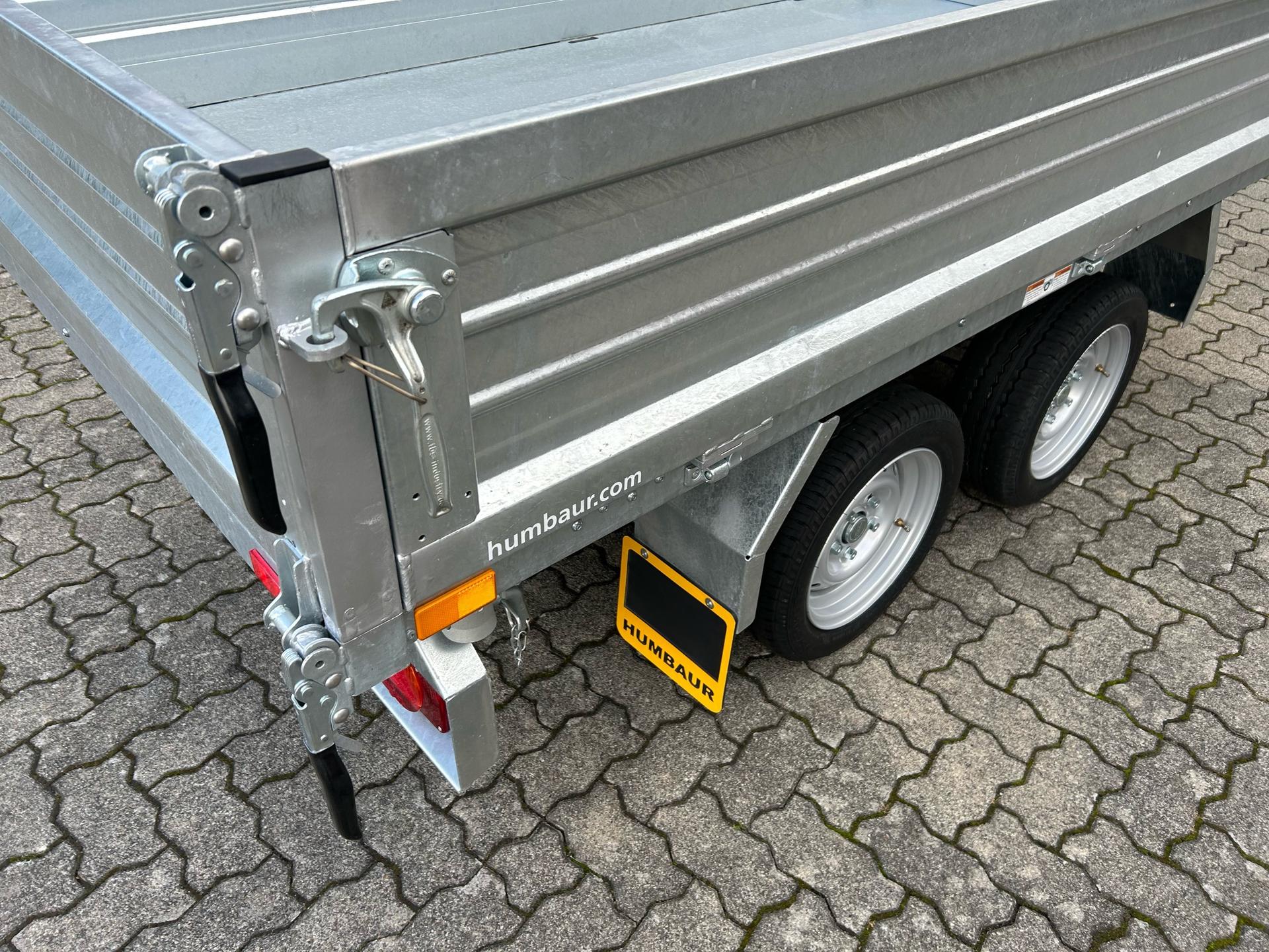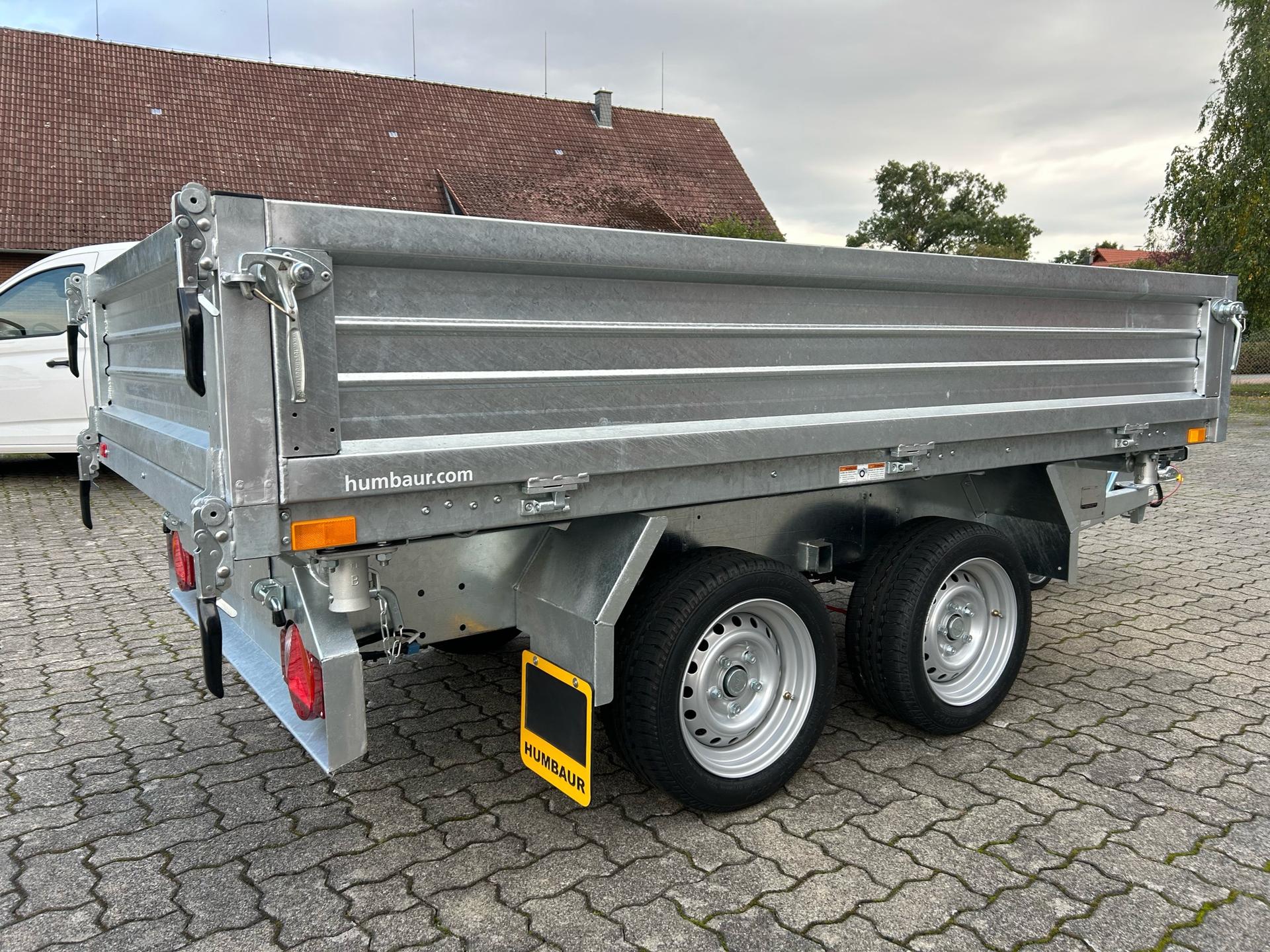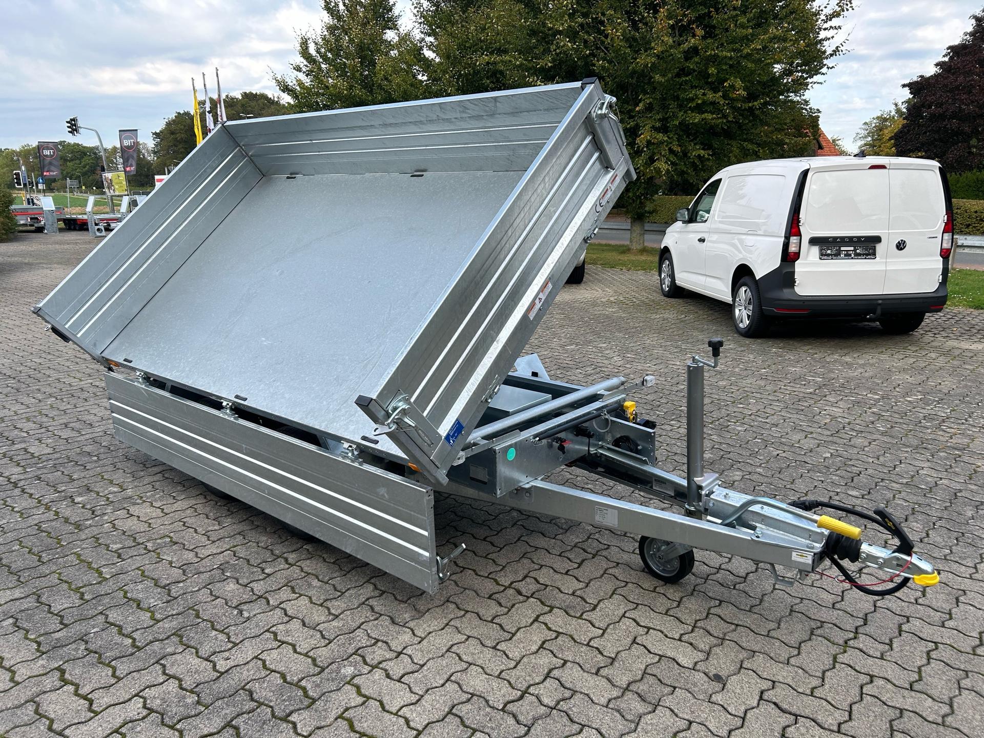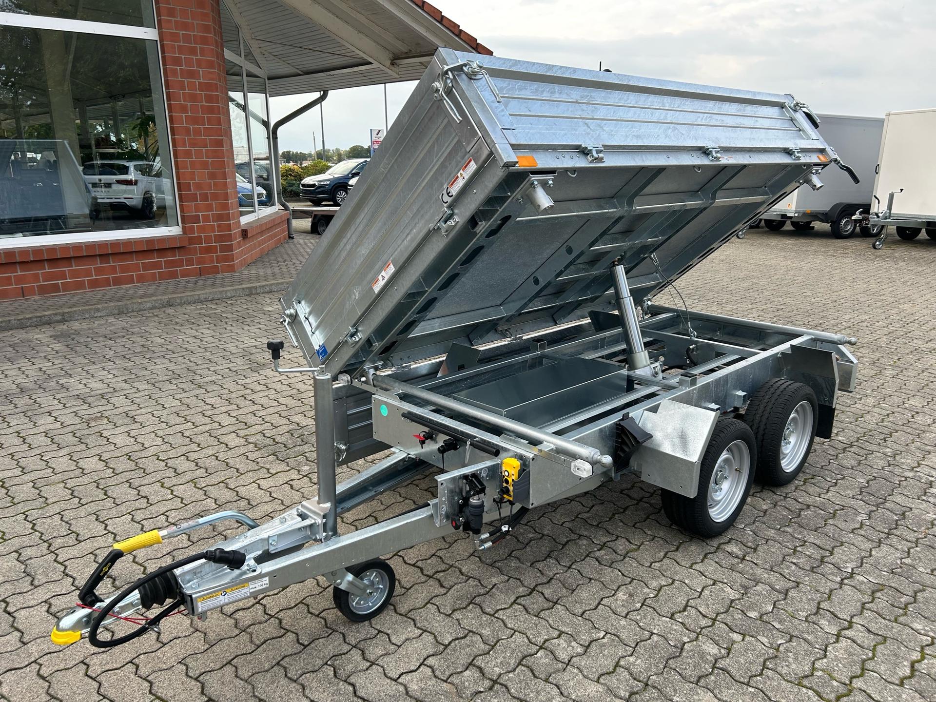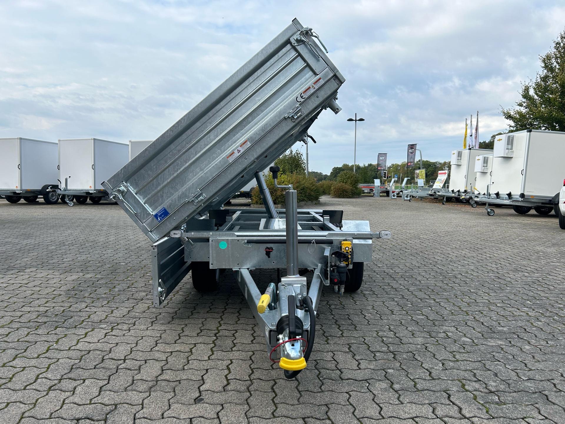 Humbaur HTK 2700.27 ProSteelDreiseitenkipperPKW AnhängerAlter: Neu (Produktionsjahr: 2025)2 Jahre Hauptuntersuchung ab dem Tag der ErstzulassungInkl. Zulassungspapiere (Kfz-Brief / Zulassungsbescheinigung Teil 2 und COC)Verfügbar ab: Sofort (auf Lager)!Finanzierung über unsere Partnerbanken möglich!Technische DatenZulässiges Gesamtgewicht: 2.700kgLeergewicht: ca. 730kgNutzlast: ca. 1.970kgAchsenanzahl: 2Laderaumlänge: 2.660mmLaderaumbreite: 1.490mmLaderaumhöhe: 400mmBremsenart: Gebremst, AuflaufbremseFahrgestell: Hochlader (Räder unter Aufbau), GummifederachsenElektrik: 12V, 13 poliger SteckerReifengröße: 195/50 R13SonderausstattungFuhrmann Profil-Bordwände aus verzinktem StahlblechKippfunktion durch Hydraulikpumpe (elektrisch / Elektropumpe)Not Hydraulikpumpe (mechanisch / Handpumpe)AusstattungRampenschächteStahlbodenplatteBordwände klapp- und abnehmbarBordwand hinten als Klappe oder PendelklappeAutomatisches StützradZurrösenRahmen geschweißt und verzinktV-DeichselAL-KO oder Knott Achsen und BremsanlageZubehör (aufpreispflichtig)100km/h Bescheinigung inkl. Nachrüstung 4x RadstoßdämpferAlu-AuffahrrampenAlufelgen Silver / BlackAbstellstützenAnhängernetzAnhängerschlossBluetooth Empfänger für ElektropumpeHöhenverstellbare DeichselRädersatz 185 R14CReserverad 195/50 R13 inkl. HalterSchlepperanschluss für HydraulikpumpeSpanngurtFahrzeuganlieferung deutschlandweitZulassung deutschlandweitÜberführungskennzeichen (5 Tage gültig)HinweisGewichtsangaben können je nach Ausstattung abweichen; Irrtümer, Zwischenverkauf und Änderungen vorbehalten!