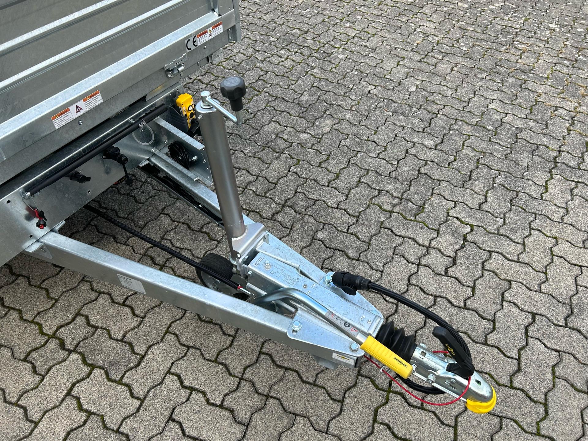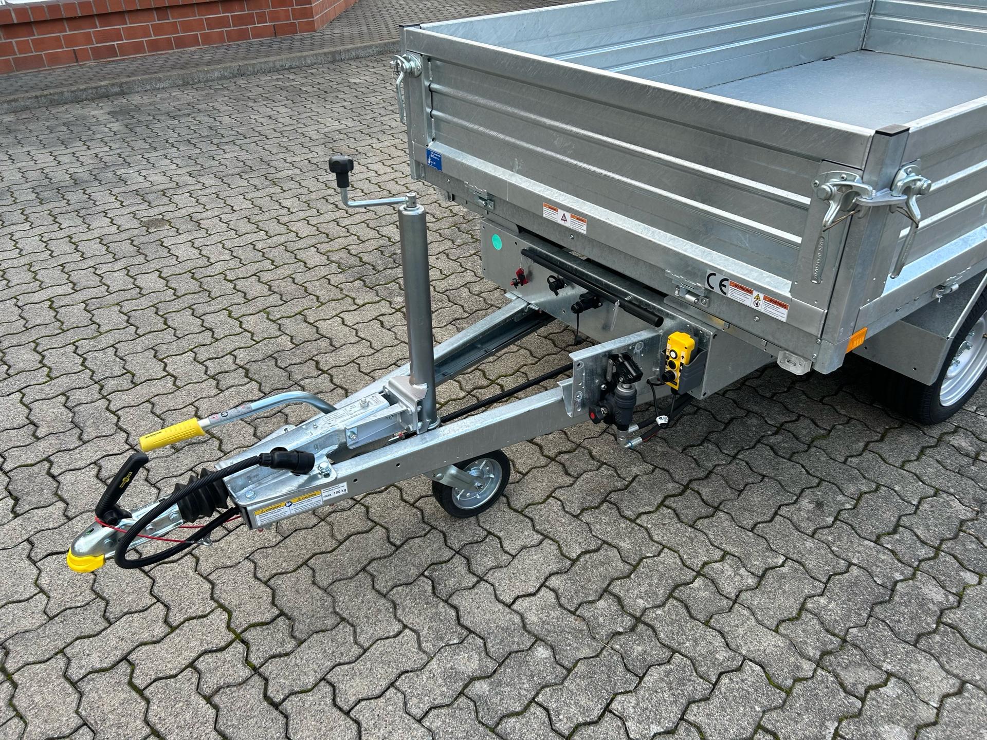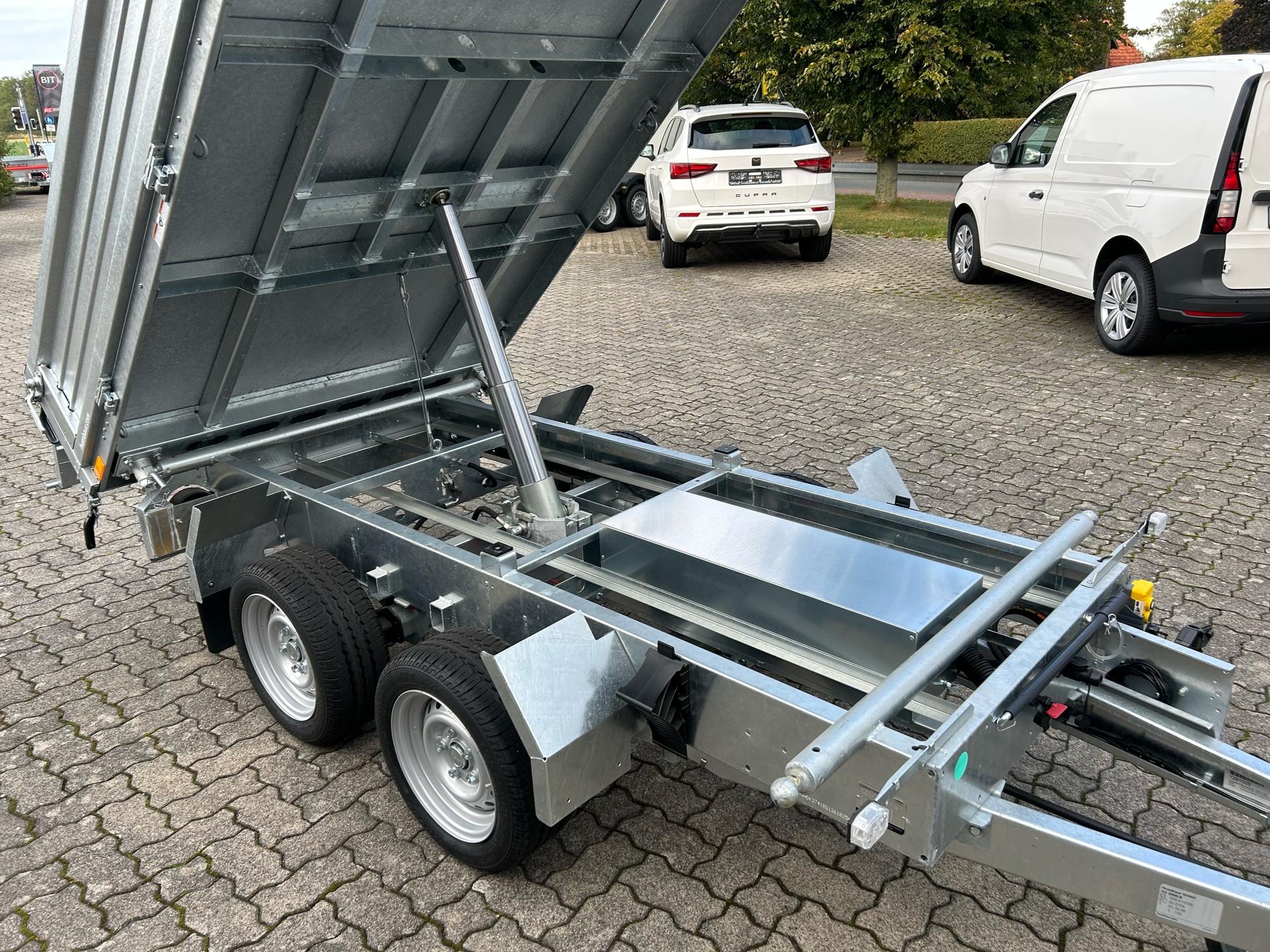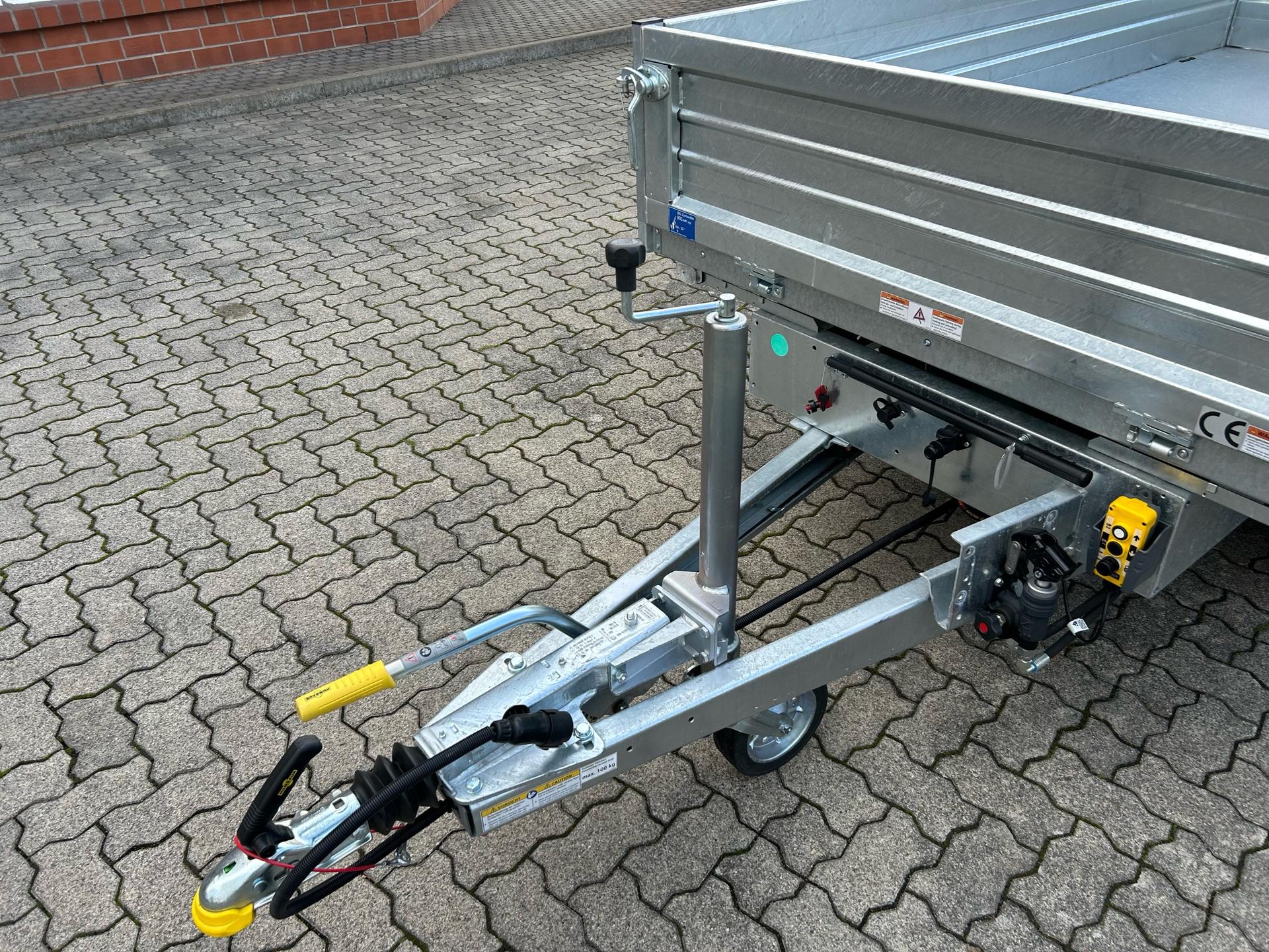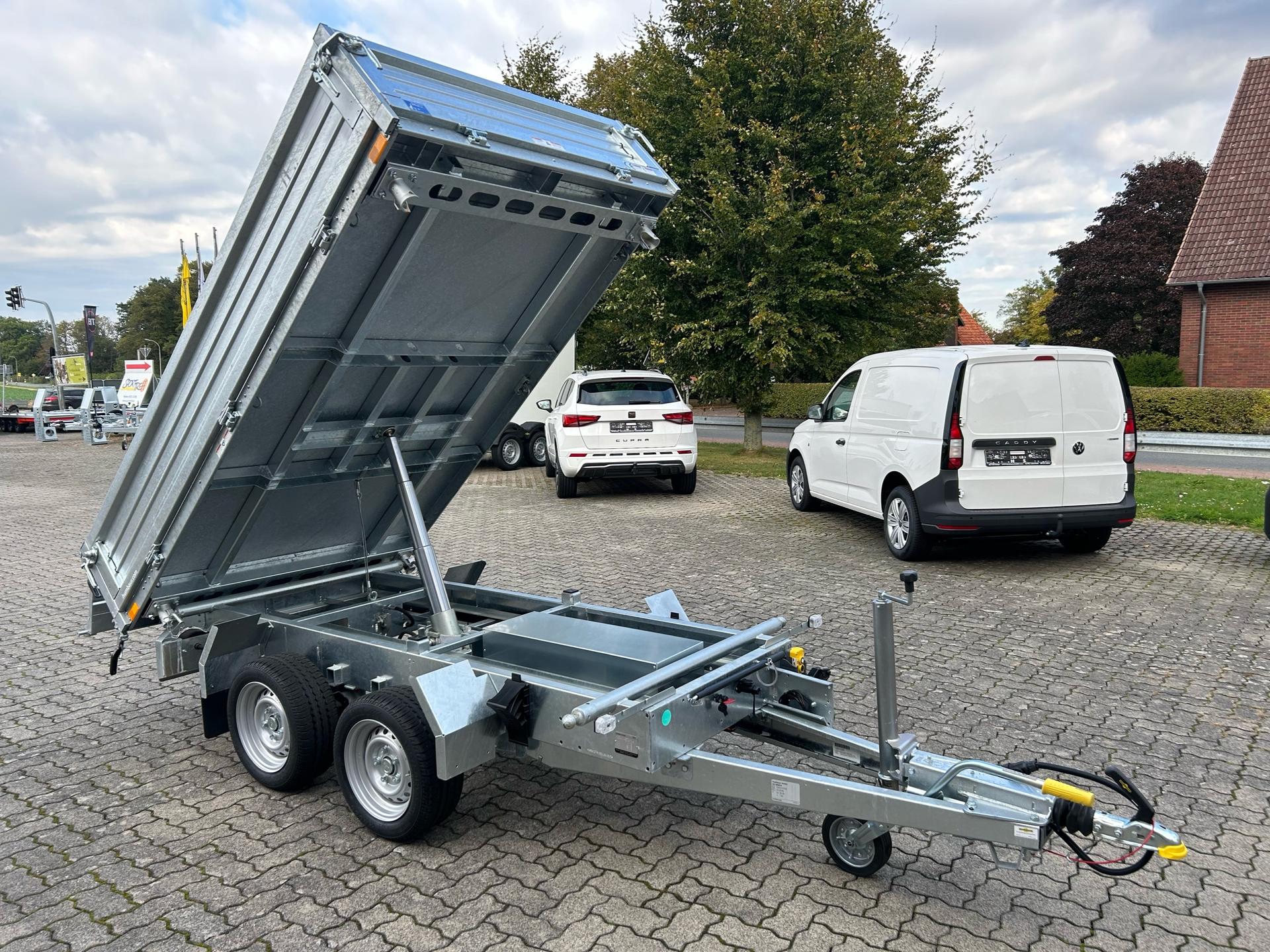 Humbaur HTK 2700.27 ProSteelDreiseitenkipperPKW AnhängerAlter: Neu (Produktionsjahr: 2025)2 Jahre Hauptuntersuchung ab dem Tag der ErstzulassungInkl. Zulassungspapiere (Kfz-Brief / Zulassungsbescheinigung Teil 2 und COC)Verfügbar ab: Sofort (auf Lager)!Finanzierung über unsere Partnerbanken möglich!Technische DatenZulässiges Gesamtgewicht: 2.700kgLeergewicht: ca. 730kgNutzlast: ca. 1.970kgAchsenanzahl: 2Laderaumlänge: 2.660mmLaderaumbreite: 1.490mmLaderaumhöhe: 400mmBremsenart: Gebremst, AuflaufbremseFahrgestell: Hochlader (Räder unter Aufbau), GummifederachsenElektrik: 12V, 13 poliger SteckerReifengröße: 195/50 R13SonderausstattungFuhrmann Profil-Bordwände aus verzinktem StahlblechKippfunktion durch Hydraulikpumpe (elektrisch / Elektropumpe)Not Hydraulikpumpe (mechanisch / Handpumpe)AusstattungRampenschächteStahlbodenplatteBordwände klapp- und abnehmbarBordwand hinten als Klappe oder PendelklappeAutomatisches StützradZurrösenRahmen geschweißt und verzinktV-DeichselAL-KO oder Knott Achsen und BremsanlageZubehör (aufpreispflichtig)100km/h Bescheinigung inkl. Nachrüstung 4x RadstoßdämpferAlu-AuffahrrampenAlufelgen Silver / BlackAbstellstützenAnhängernetzAnhängerschlossBluetooth Empfänger für ElektropumpeHöhenverstellbare DeichselRädersatz 185 R14CReserverad 195/50 R13 inkl. HalterSchlepperanschluss für HydraulikpumpeSpanngurtFahrzeuganlieferung deutschlandweitZulassung deutschlandweitÜberführungskennzeichen (5 Tage gültig)HinweisGewichtsangaben können je nach Ausstattung abweichen; Irrtümer, Zwischenverkauf und Änderungen vorbehalten!