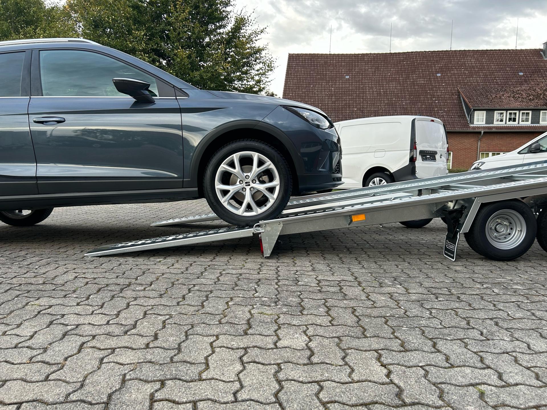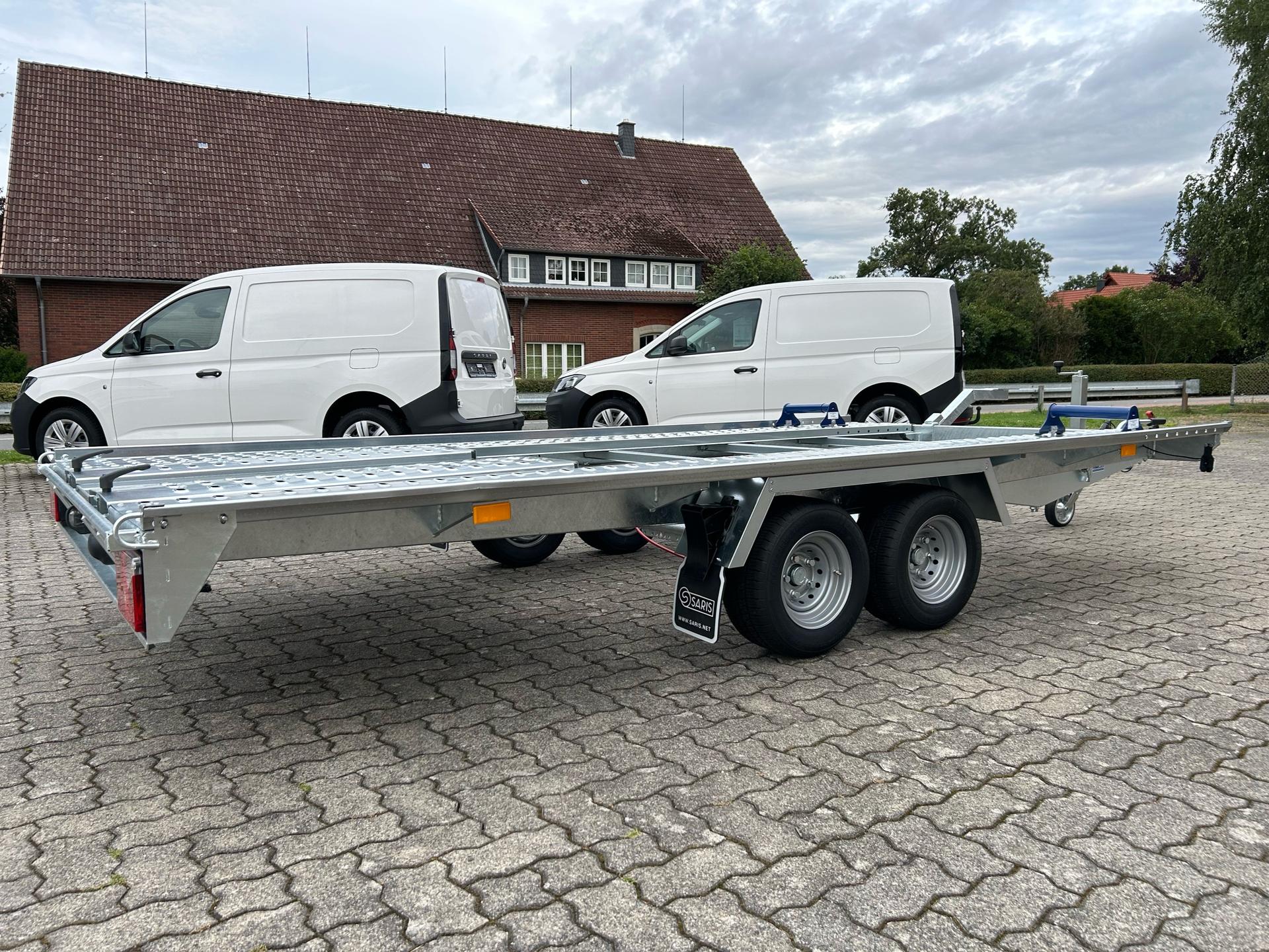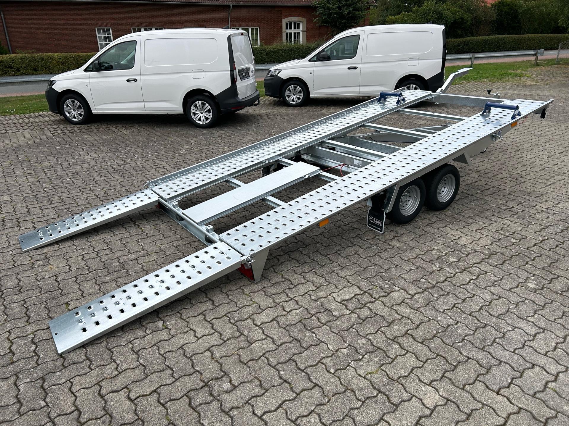 Saris AT 401 202 2700 2 K (ehemalig: Pongratz L-AT 400 T-K-2 / Pongratz wurde von Saris übernommen)AutotransporterPKW AnhängerAlter: Neu (Produktionsjahr: 2025)2 Jahre Hauptuntersuchung ab dem Tag der ErstzulassungInkl. Zulassungspapiere (Kfz-Brief / Zulassungsbescheinigung Teil 2 und COC)Verfügbar ab: Sofort (auf Lager)!Finanzierung über unsere Partnerbanken möglich!Technische DatenZulässiges Gesamtgewicht: 2.700kgLeergewicht: ca. 557kgNutzlast: ca. 2.143kgAchsenanzahl: 2Laderaumlänge: 4.010mmLaderaumbreite: 2.020mmBremsenart: Gebremst, AuflaufbremseFahrgestell: Hochlader (Räder unter Aufbau), GummifederachsenElektrik: 12V, 13 poliger SteckerReifengröße: 195/55 R10CSonderausstattungOhneAusstattungLochstandschienen (VDI 2700 8.1 Zertifikat)Automatisches StützradKippfunktion durch Gewichtsverlagerung und Stoßdämpfer-UnterstützungRadstopperRahmen geschweißt und verzinktSeilwindenhalterStahl-Auffahrrampen unterschiebbarUnterlegkeileV-DeichselAL-KO oder Knott Achsen und BremsanlageZubehör (aufpreispflichtig)100km/h Bescheinigung inkl. Nachrüstung 4x Radstoßdämpfer (Leermasse Zugfahrzeug min. 2.455kg)Alubodenplatten zwischen den LochstandschienenAnhängerschlossHandseilwindeLED-BeleuchtungReserverad 195/55 R10C inkl. HalterSpanngurtZusätzlicher RadstopperFahrzeuganlieferung deutschlandweit (Angebot für individuellen Transportpreis gewünscht)Zulassung Umkreis 25km (Durchführung Autohaus Möller)Zulassung deutschlandweit (Durchführung Zulassungsdienst)Ausfuhrkennzeichen (15 Tage gültig)Ausfuhrkennzeichen (30 Tage gültig)Überführungskennzeichen (5 Tage gültig)ZollanmeldungZusendung Kfz-Papiere zwecks Anmeldung (Anzahlung erforderlich)HinweiseGewichtsangaben können je nach Ausstattung abweichen; Irrtümer, Zwischenverkauf und Änderungen vorbehalten!