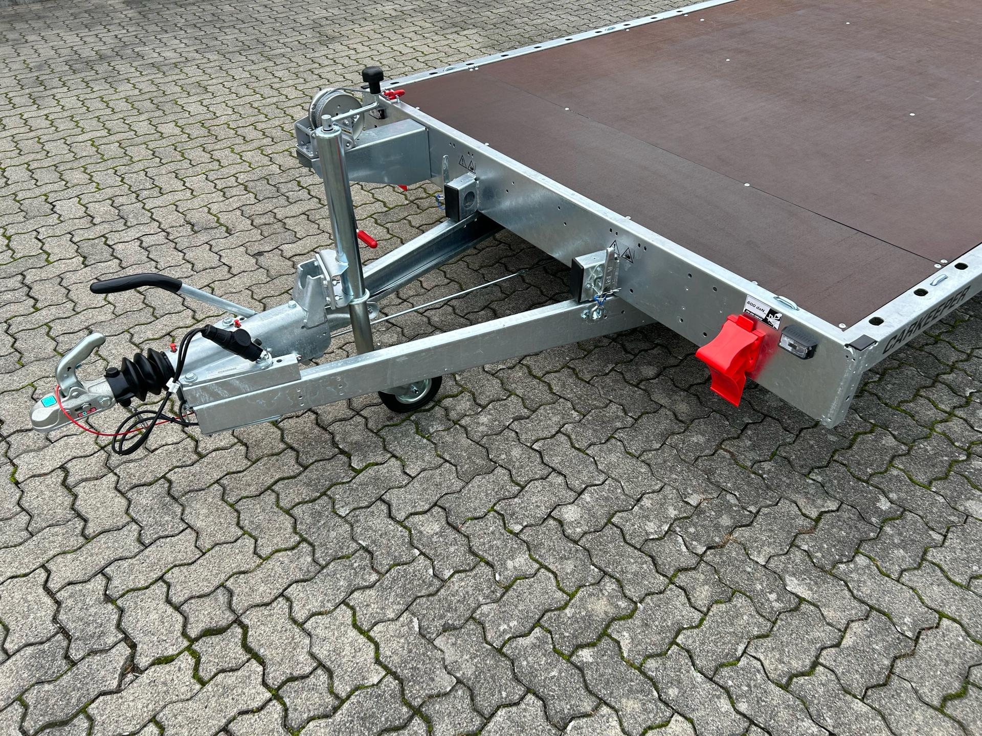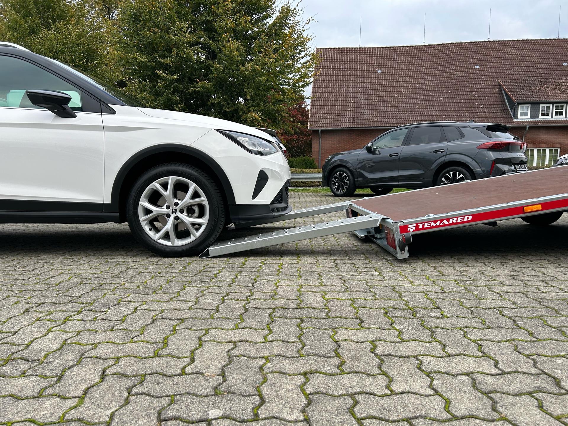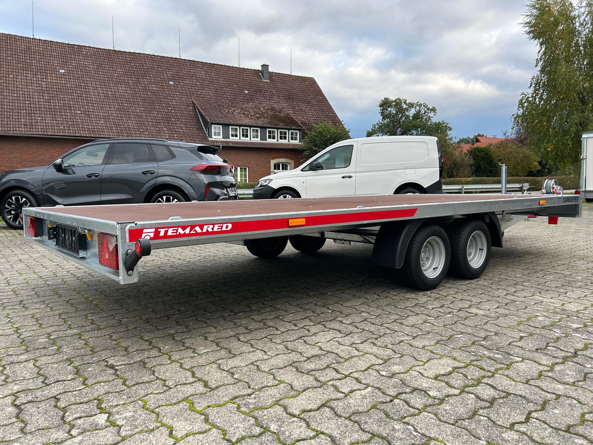 Temared Carkeeper 4521/2 PAutotransporterPKW AnhängerAlter: Neu (Produktionsjahr: 2025)2 Jahre Hauptuntersuchung ab dem Tag der ErstzulassungInkl. Zulassungspapiere (Kfz-Brief / Zulassungsbescheinigung Teil 2 und COC)Verfügbar ab: Sofort (auf Lager)!Finanzierung über unsere Partnerbanken möglich!Technische DatenZulässiges Gesamtgewicht: 3.000kgLeergewicht: ca. 678kgNutzlast: ca. 2.322kgAchsenanzahl: 2Laderaumlänge: 4.490mmLaderaumbreite: 2.105mmBremsenart: Gebremst, AuflaufbremseFahrgestell: Hochlader (Räder unter Aufbau), GummifederachsenElektrik: 12V, 13 poliger SteckerReifengröße: 195/55 R10CSonderausstattungOhneAusstattungSiebdruckbodenplattenAutomatisches StützradHandseilwinde inkl. HalterKippfunktion durch Gewichtsverlagerung und Stoßdämpfer-UnterstützungRahmen geschweißt und verzinktSeitliches LochprofilStahl-Auffahrrampen unterschiebbarUnterlegkeileZurrbügelV-DeichselAL-KO oder Knott Achsen und BremsanlageZubehör (aufpreispflichtig)100km/h Bescheinigung inkl. Nachrüstung 4x Radstoßdämpfer (Leermasse Zugfahrzeug min. 2.727kg)Alu-AuffahrrampenAlubordwände 30cmMontage AlubordwändeAnhängerschlossLED-BeleuchtungRadstopperstangeReserverad 195/55 R10C inkl. HalterSpanngurtFahrzeuganlieferung deutschlandweit (Angebot für individuellen Transportpreis gewünscht)Zulassung Umkreis 25km (Durchführung Autohaus Möller)Zulassung deutschlandweit (Durchführung Zulassungsdienst)Ausfuhrkennzeichen (15 Tage gültig)Ausfuhrkennzeichen (30 Tage gültig)Überführungskennzeichen (5 Tage gültig)ZollanmeldungZusendung Kfz-Papiere zwecks Anmeldung (Anzahlung erforderlich)HinweiseGewichtsangaben können je nach Ausstattung abweichen; Irrtümer, Zwischenverkauf und Änderungen vorbehalten!