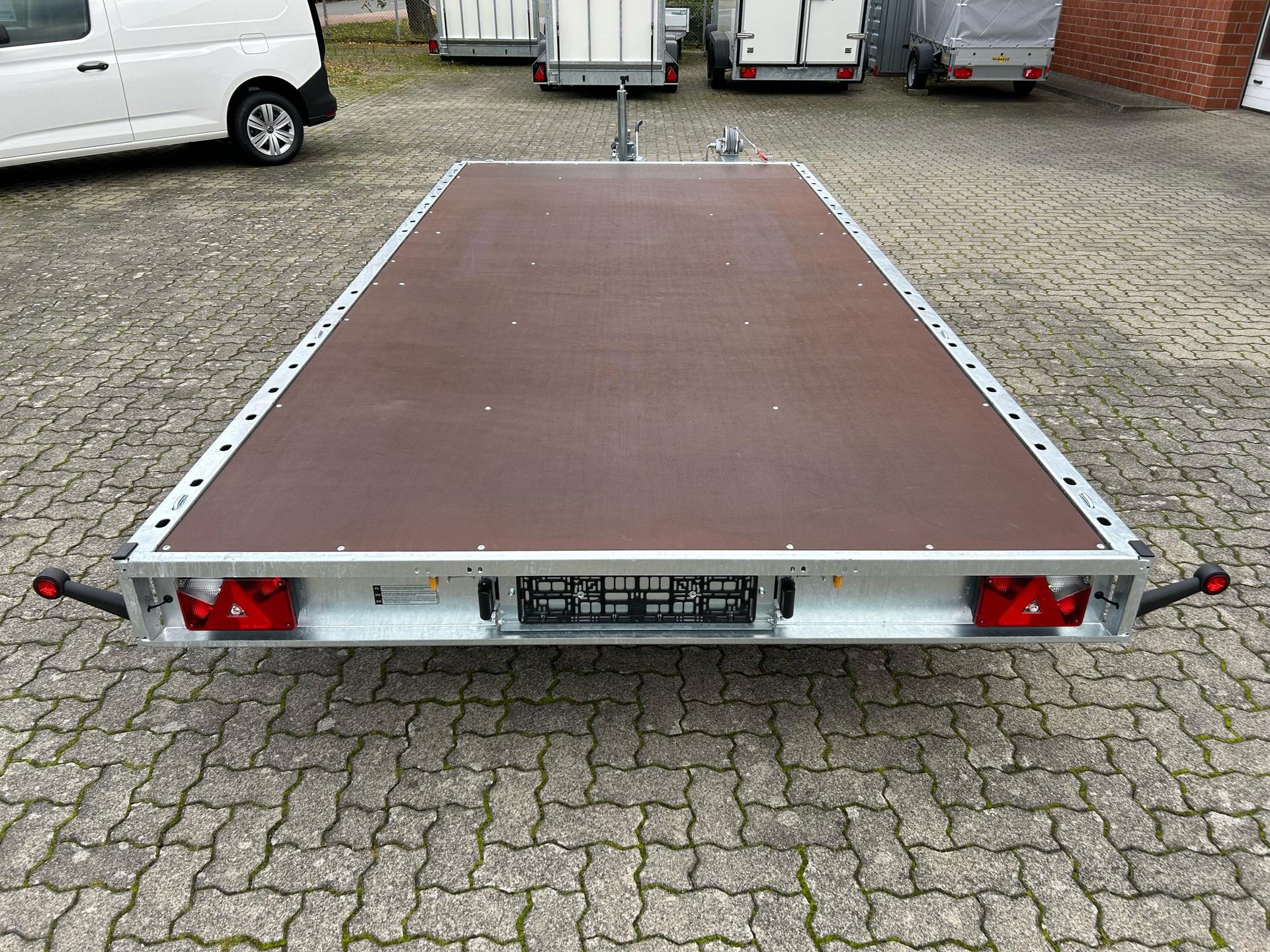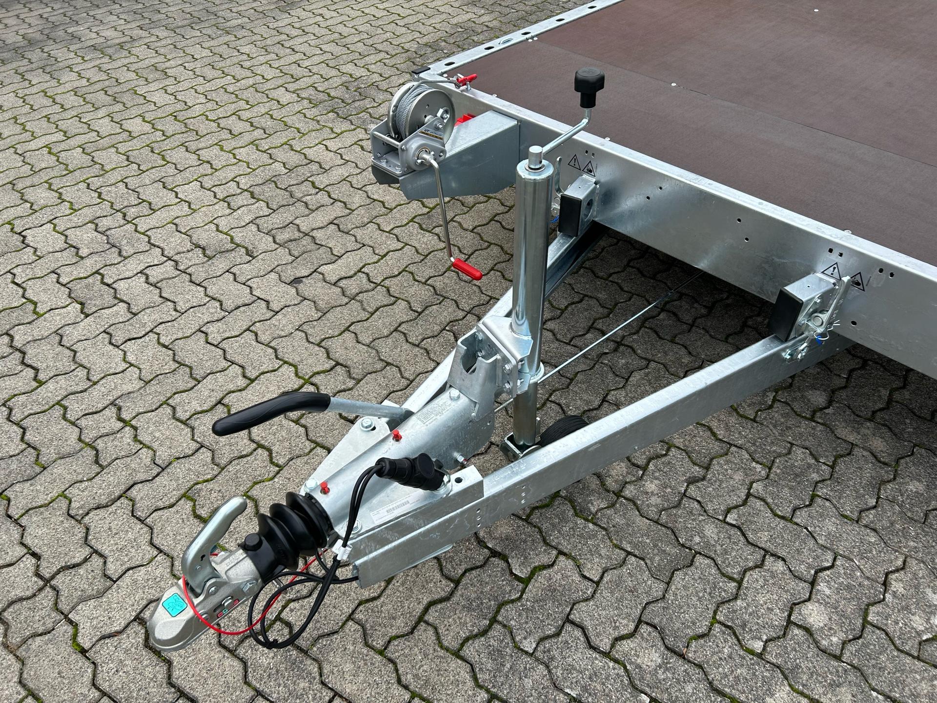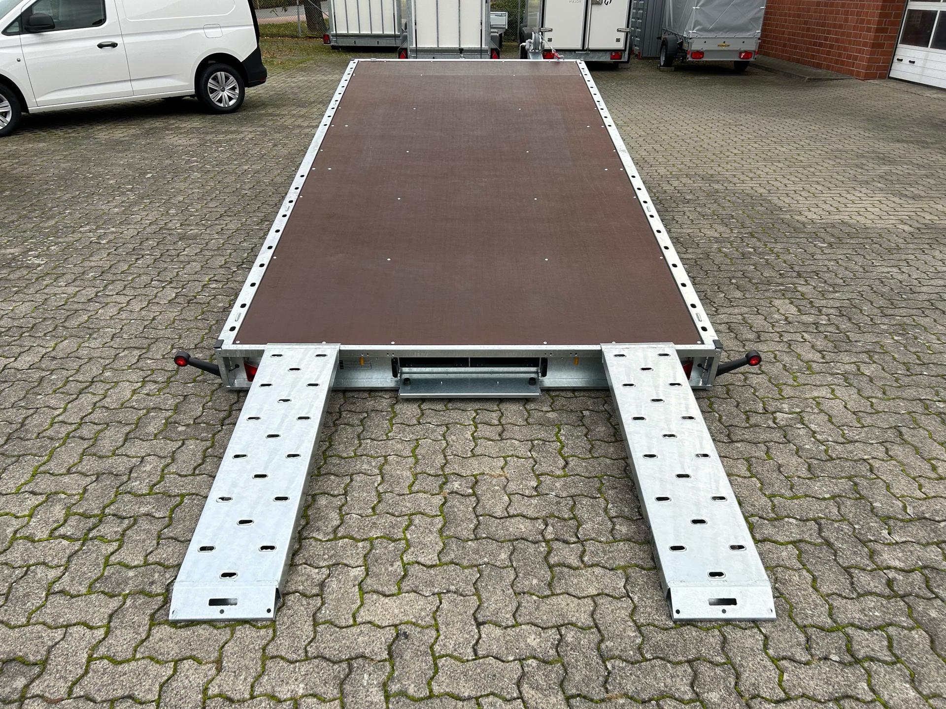 Temared Carkeeper 4521/2 PAutotransporterPKW AnhängerAlter: Neu (Produktionsjahr: 2025)2 Jahre Hauptuntersuchung ab dem Tag der ErstzulassungInkl. Zulassungspapiere (Kfz-Brief / Zulassungsbescheinigung Teil 2 und COC)Verfügbar ab: Sofort (auf Lager)!Finanzierung über unsere Partnerbanken möglich!Technische DatenZulässiges Gesamtgewicht: 3.000kgLeergewicht: ca. 678kgNutzlast: ca. 2.322kgAchsenanzahl: 2Laderaumlänge: 4.490mmLaderaumbreite: 2.105mmBremsenart: Gebremst, AuflaufbremseFahrgestell: Hochlader (Räder unter Aufbau), GummifederachsenElektrik: 12V, 13 poliger SteckerReifengröße: 195/55 R10CSonderausstattungOhneAusstattungSiebdruckbodenplattenAutomatisches StützradHandseilwinde inkl. HalterKippfunktion durch Gewichtsverlagerung und Stoßdämpfer-UnterstützungRahmen geschweißt und verzinktSeitliches LochprofilStahl-Auffahrrampen unterschiebbarUnterlegkeileZurrbügelV-DeichselAL-KO oder Knott Achsen und BremsanlageZubehör (aufpreispflichtig)100km/h Bescheinigung inkl. Nachrüstung 4x Radstoßdämpfer (Leermasse Zugfahrzeug min. 2.727kg)Alu-AuffahrrampenAlubordwände 30cmMontage AlubordwändeAnhängerschlossLED-BeleuchtungRadstopperstangeReserverad 195/55 R10C inkl. HalterSpanngurtFahrzeuganlieferung deutschlandweit (Angebot für individuellen Transportpreis gewünscht)Zulassung Umkreis 25km (Durchführung Autohaus Möller)Zulassung deutschlandweit (Durchführung Zulassungsdienst)Ausfuhrkennzeichen (15 Tage gültig)Ausfuhrkennzeichen (30 Tage gültig)Überführungskennzeichen (5 Tage gültig)ZollanmeldungZusendung Kfz-Papiere zwecks Anmeldung (Anzahlung erforderlich)HinweiseGewichtsangaben können je nach Ausstattung abweichen; Irrtümer, Zwischenverkauf und Änderungen vorbehalten!