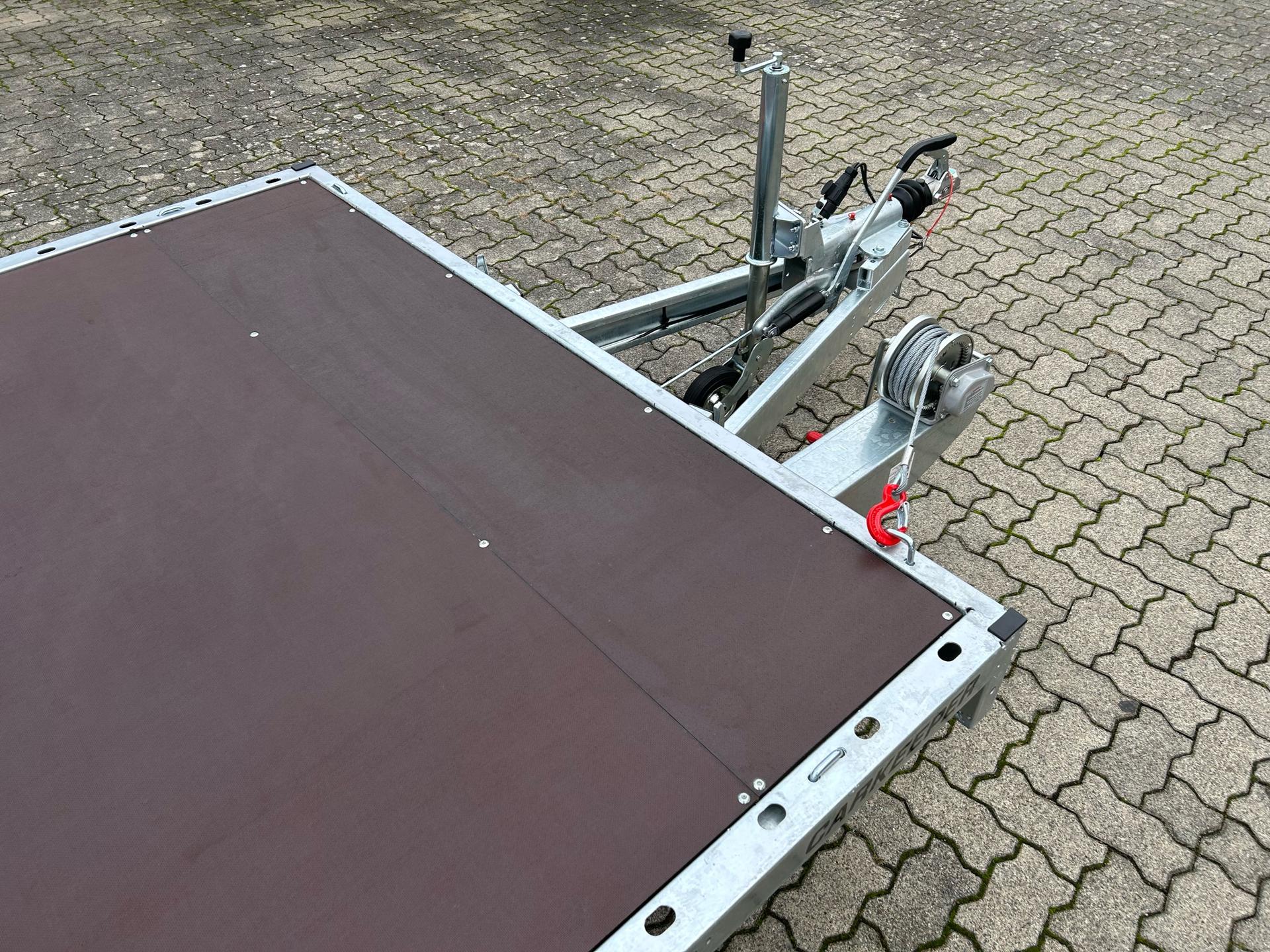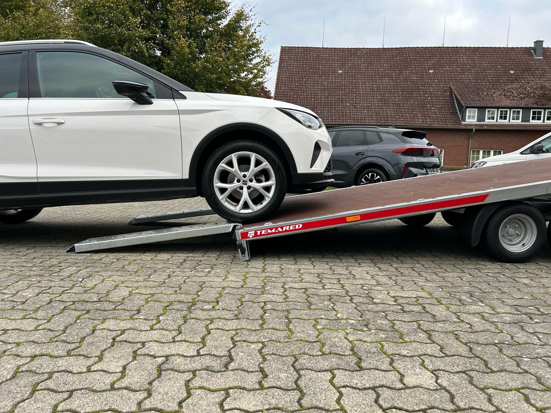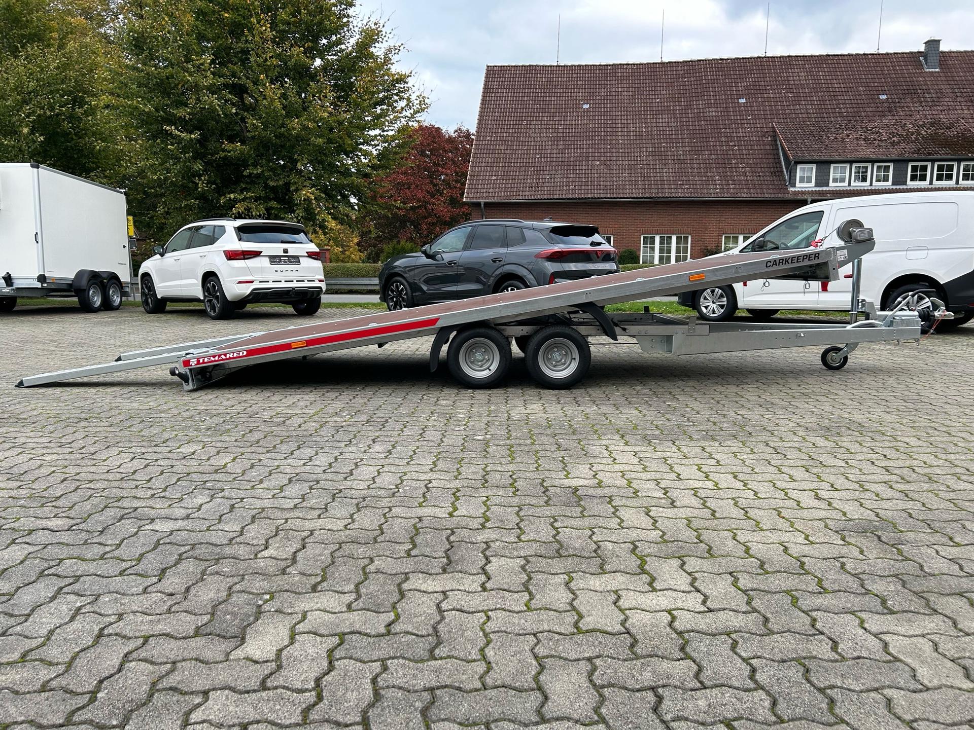 Temared Carkeeper 4521/2 PAutotransporterPKW AnhängerAlter: Neu (Produktionsjahr: 2025)2 Jahre Hauptuntersuchung ab dem Tag der ErstzulassungInkl. Zulassungspapiere (Kfz-Brief / Zulassungsbescheinigung Teil 2 und COC)Verfügbar ab: Ca. 6 Wochen nach Bestelleingang (unverbindlich)Finanzierung über unsere Partnerbanken möglich!Technische DatenZulässiges Gesamtgewicht: 2.700kgLeergewicht: ca. 648kgNutzlast: ca. 2.052kgAchsenanzahl: 2Laderaumlänge: 4.490mmLaderaumbreite: 2.105mmBremsenart: Gebremst, AuflaufbremseFahrgestell: Hochlader (Räder unter Aufbau), GummifederachsenElektrik: 12V, 13 poliger SteckerReifengröße: 195/55 R10CSonderausstattungOhneAusstattungSiebdruckbodenplattenAutomatisches StützradHandseilwinde inkl. HalterKippfunktion durch Gewichtsverlagerung und Stoßdämpfer-UnterstützungRahmen geschweißt und verzinktSeitliches LochprofilStahl-Auffahrrampen unterschiebbarUnterlegkeileZurrbügelV-DeichselAL-KO oder Knott Achsen und BremsanlageZubehör (aufpreispflichtig)100km/h Bescheinigung inkl. Nachrüstung 4x Radstoßdämpfer (Leermasse Zugfahrzeug min. 2.455kg)Alu-AuffahrrampenAlubordwände 30cmMontage AlubordwändeAnhängerschlossLED-BeleuchtungRadstopperstangeReserverad 195/55 R10C inkl. HalterSpanngurtFahrzeuganlieferung deutschlandweit (Angebot für individuellen Transportpreis gewünscht)Zulassung Umkreis 25km (Durchführung Autohaus Möller)Zulassung deutschlandweit (Durchführung Zulassungsdienst)Ausfuhrkennzeichen (15 Tage gültig)Ausfuhrkennzeichen (30 Tage gültig)Überführungskennzeichen (5 Tage gültig)ZollanmeldungZusendung Kfz-Papiere zwecks Anmeldung (Anzahlung erforderlich)HinweiseGewichtsangaben können je nach Ausstattung abweichen; Irrtümer, Zwischenverkauf und Änderungen vorbehalten!