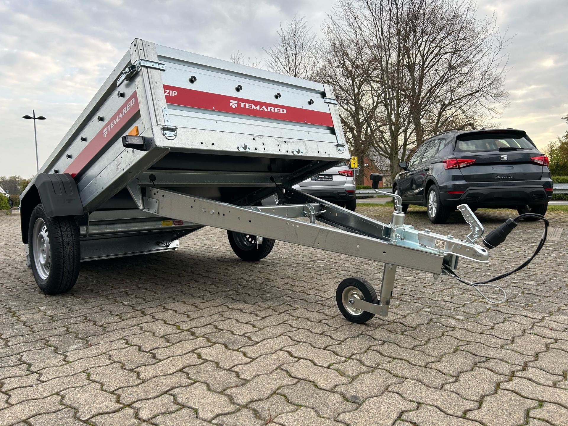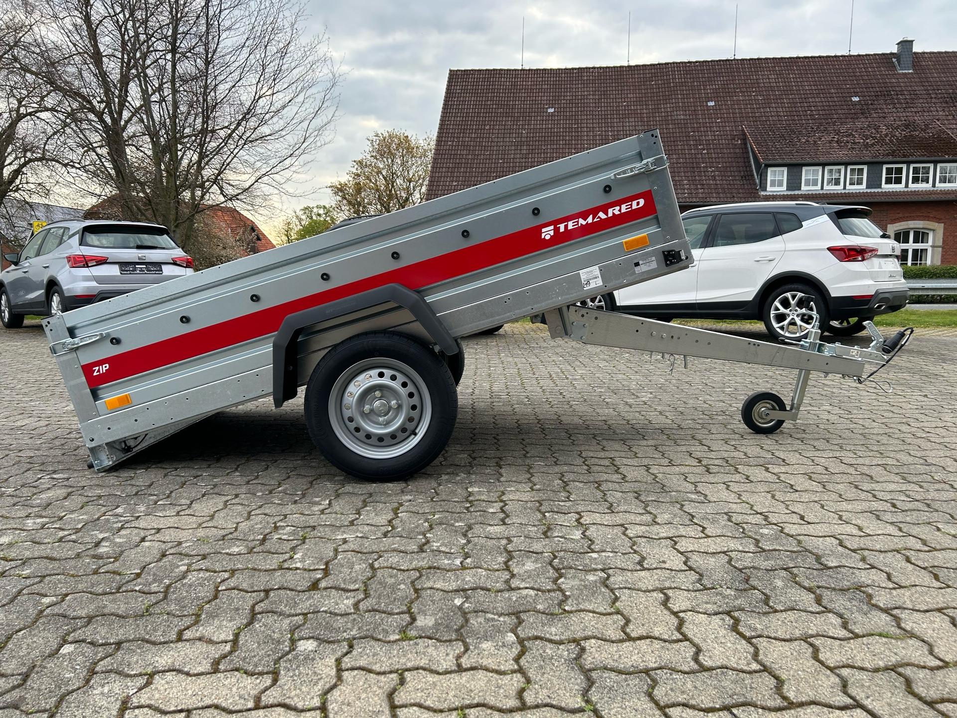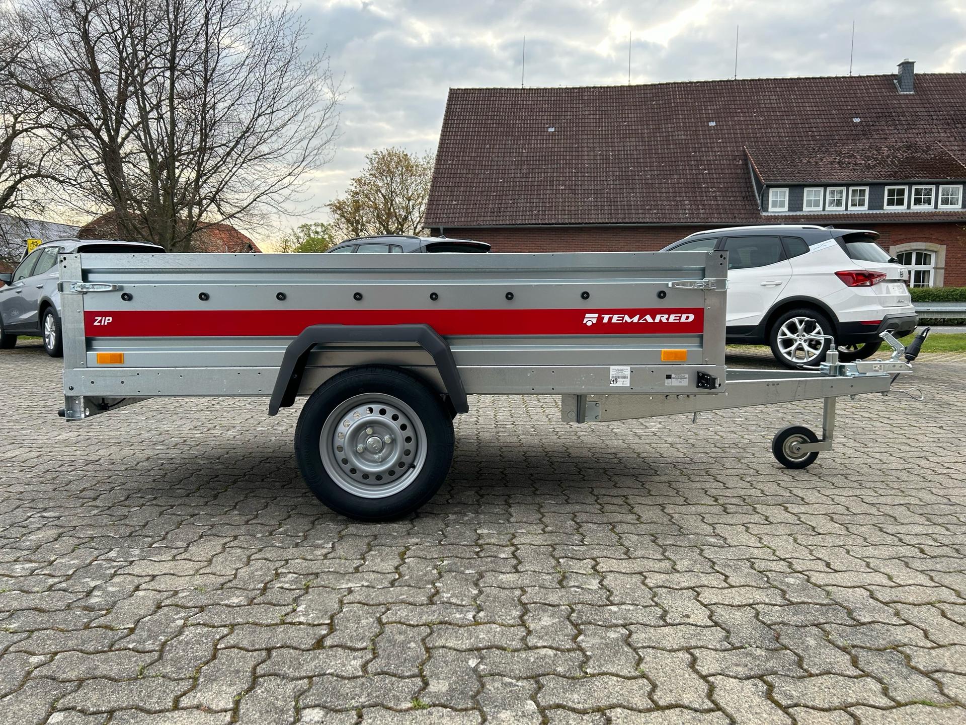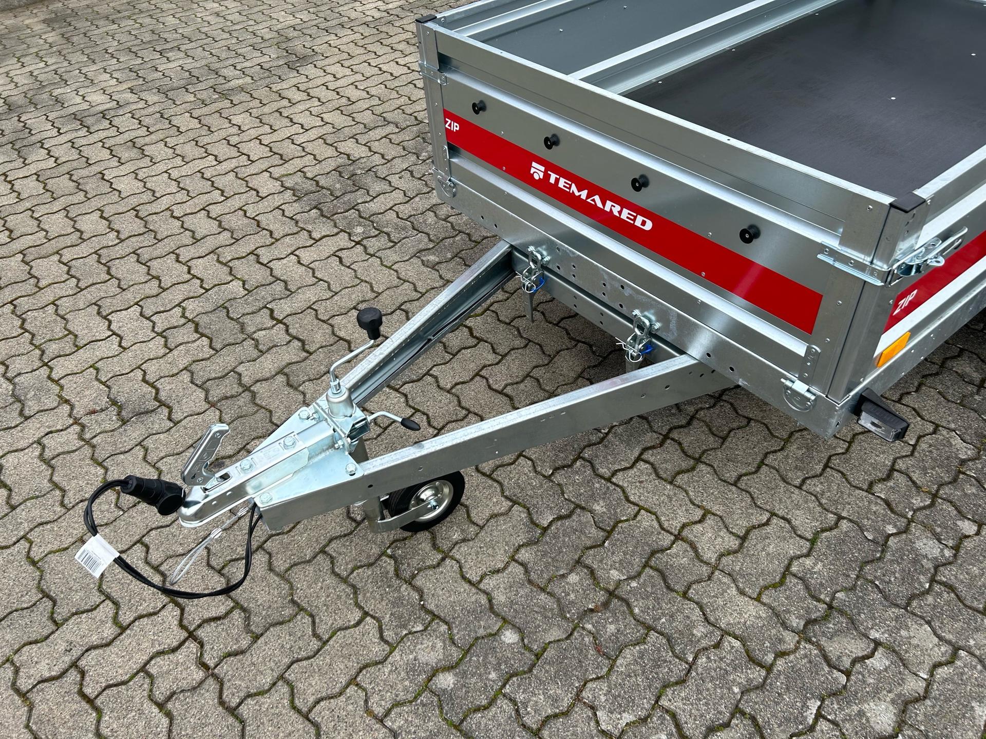 Temared Zip 2312 KippKastenanhängerPKW AnhängerAlter: Neu (Produktionsjahr: 2026)3 Jahre Hauptuntersuchung ab dem Tag der ErstzulassungInkl. Zulassungspapiere (Kfz-Brief / Zulassungsbescheinigung Teil 2 und COC)Verfügbar ab: Sofort (auf Lager)!Finanzierung über unsere Partnerbanken möglich!Technische DatenZulässiges Gesamtgewicht: 750kgLeergewicht: ca. 170kgNutzlast: ca. 580kgAchsenanzahl: 1Laderaumlänge: 2.309mmLaderaumbreite: 1.261mmLaderaumhöhe: 400mmBremsenart: UngebremstFahrgestell: Tieflader (Räder neben Aufbau), GummifederachseElektrik: 12V, 7 poliger SteckerReifengröße: 155/70 R13SonderausstattungOhneAusstattung100km/h Bescheinigung (Leermasse Zugfahrzeug min. 2.500kg)Bordwände hinten und vorne klapp- und abnehmbarBordwände seitlich abnehmbarKippbare Deichsel (Anhänger lässt sich hochkant aufstellen)PlanenknöpfeSiebdruckbodenplatteStahlbordwändeStützradRahmen geschweißt, genietet und verzinktZurrbügelV-DeichselAL-KO oder Knott AchseZubehör (aufpreispflichtig)AbstellstützenAludeckelMontage AludeckelAnhängernetzAnhängerschlossFlachplane (Grau)Flachplane-QuerstrebeH-GestellHochspriegel und Plane 80cm oder 110cm (Grau)Laubgitter-Aufsatz 40cmReserverad 155/70 R13 inkl. HalterSpanngurtStahlbordwände-Aufsatz 40cmFahrzeuganlieferung deutschlandweit (Angebot für individuellen Transportpreis gewünscht)Zulassung Umkreis 25km (Durchführung Autohaus Möller)Zulassung deutschlandweit (Durchführung Zulassungsdienst)Ausfuhrkennzeichen (15 Tage gültig)Ausfuhrkennzeichen (30 Tage gültig)Überführungskennzeichen (5 Tage gültig)ZollanmeldungZusendung Kfz-Papiere zwecks Anmeldung (Anzahlung erforderlich)HinweisGewichtsangaben können je nach Ausstattung abweichen; Irrtümer, Zwischenverkauf und Änderungen vorbehalten!