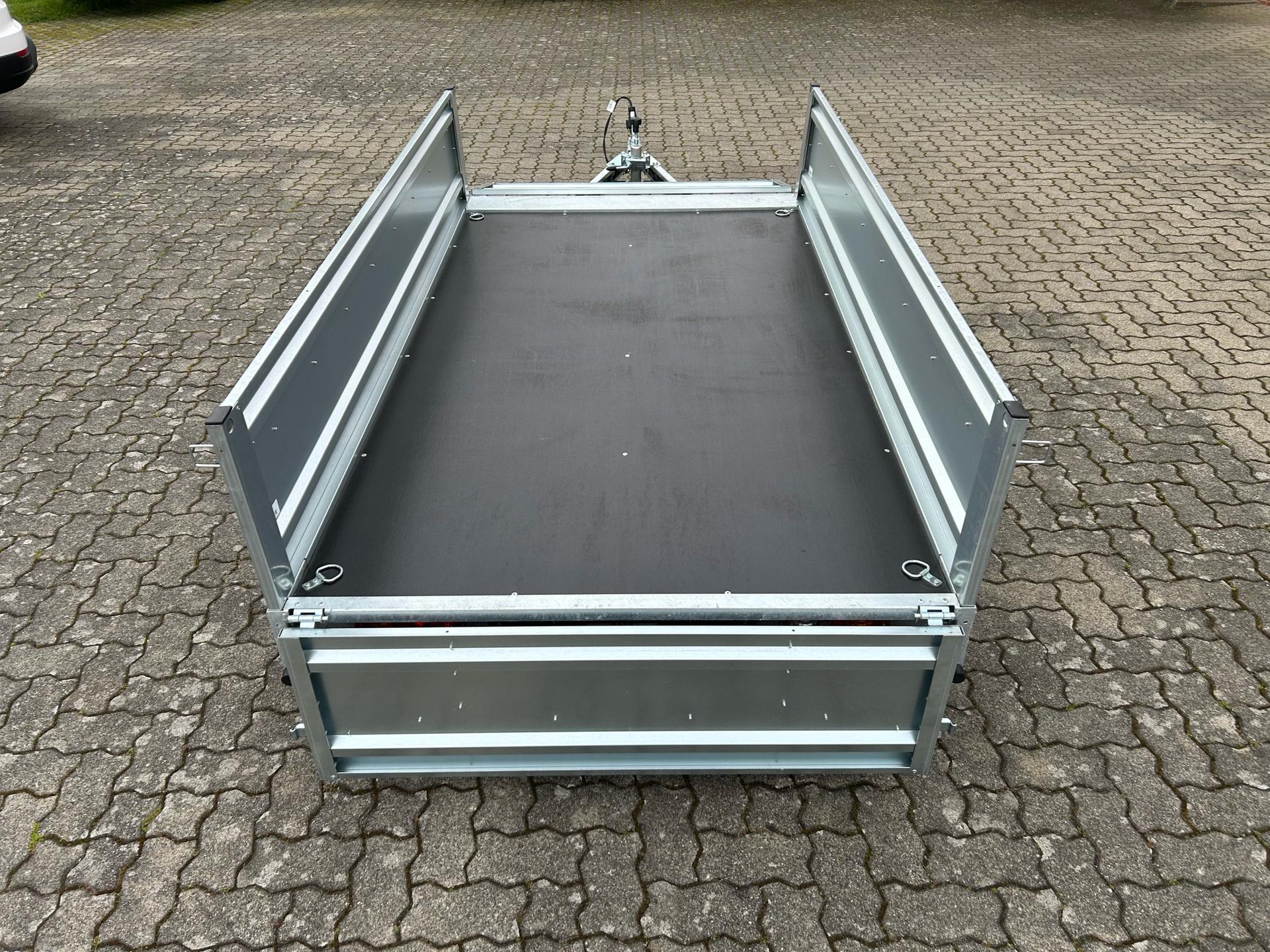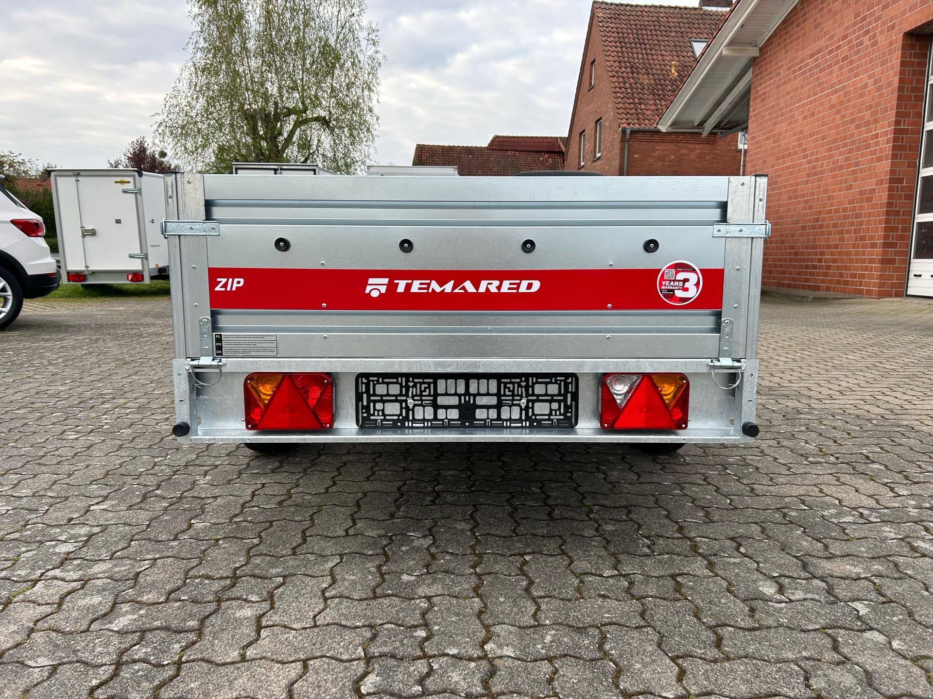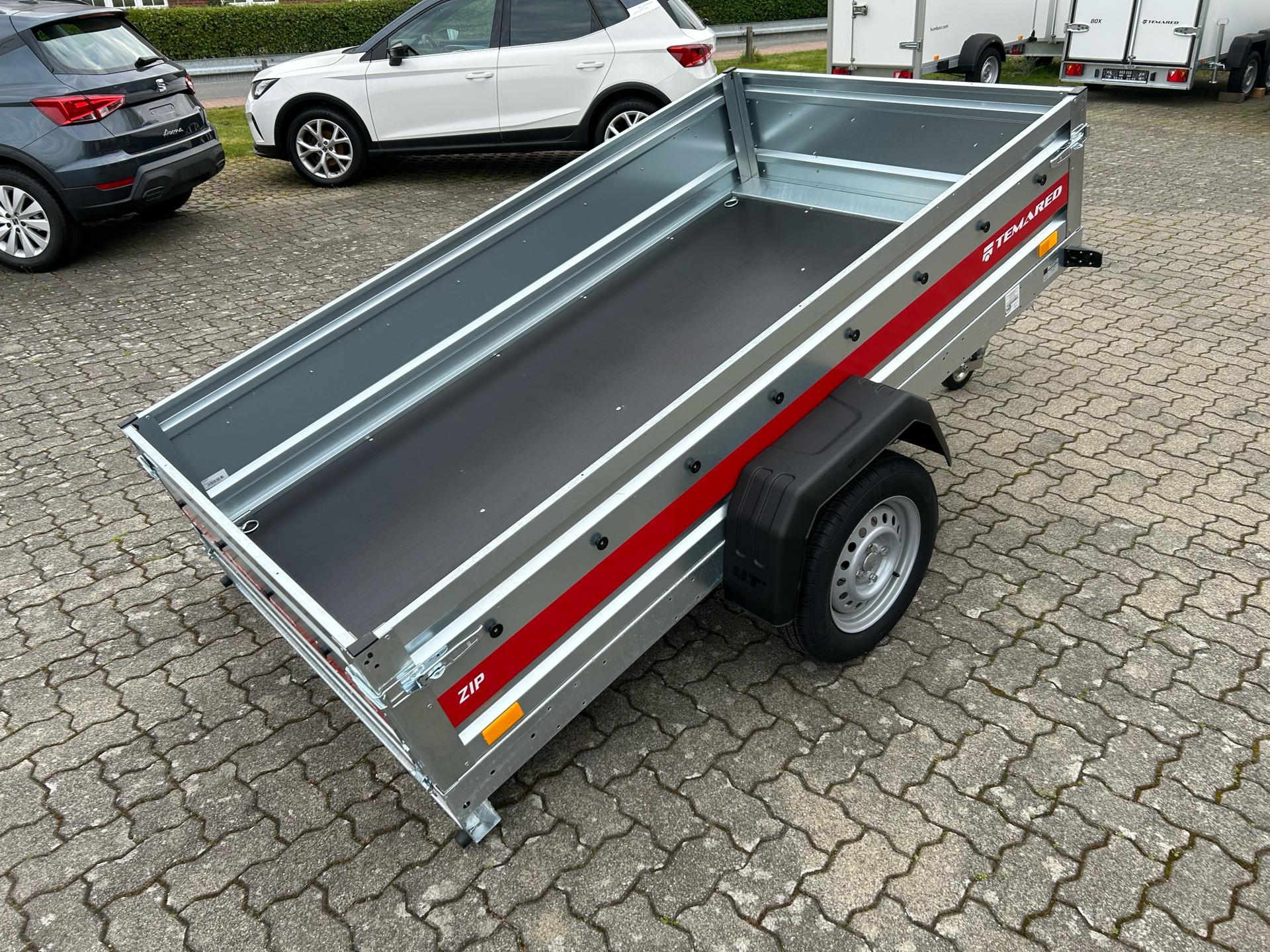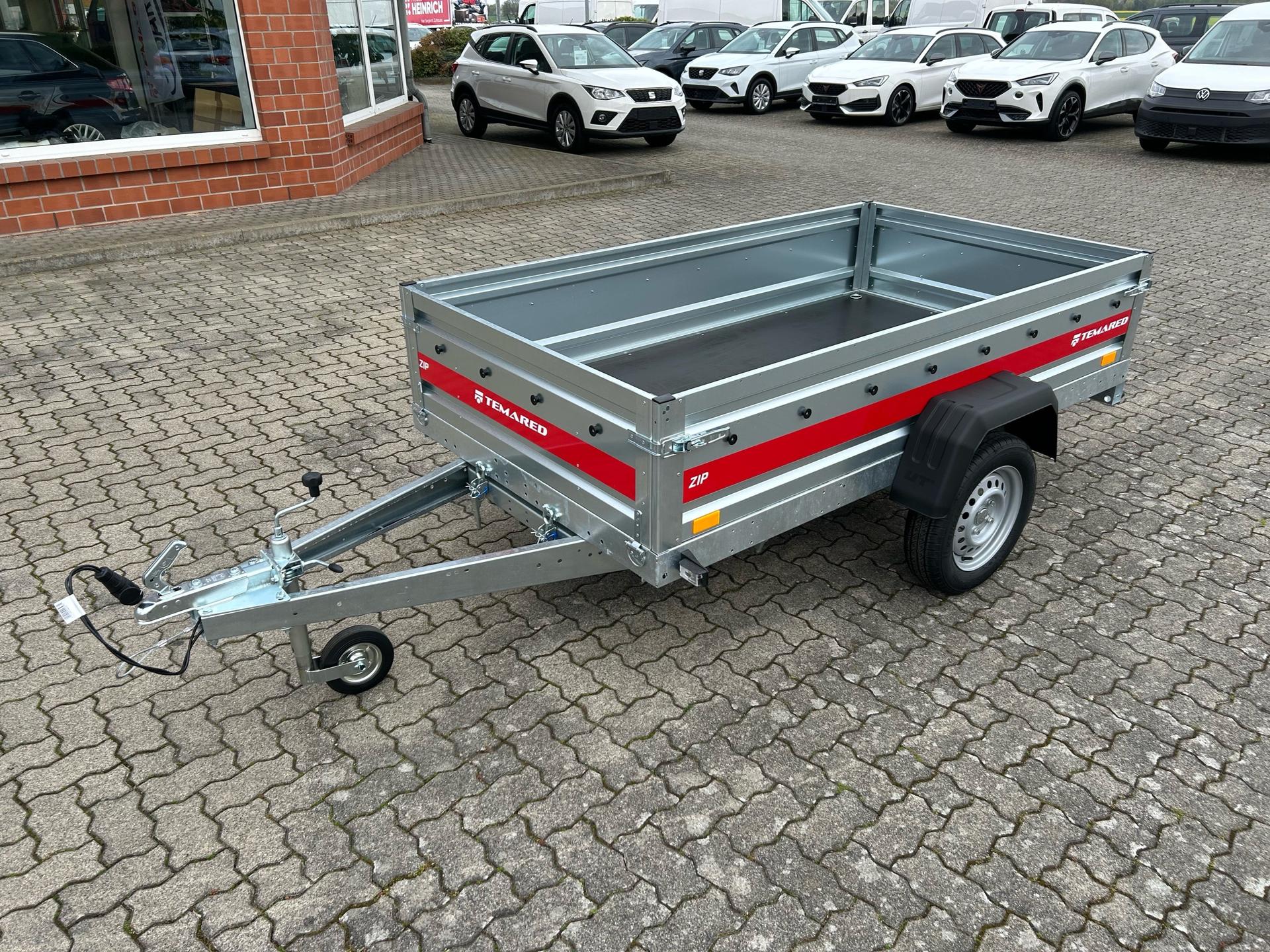 Temared Zip 2312 KippKastenanhängerPKW AnhängerAlter: Neu (Produktionsjahr: 2026)3 Jahre Hauptuntersuchung ab dem Tag der ErstzulassungInkl. Zulassungspapiere (Kfz-Brief / Zulassungsbescheinigung Teil 2 und COC)Verfügbar ab: Sofort (auf Lager)!Finanzierung über unsere Partnerbanken möglich!Technische DatenZulässiges Gesamtgewicht: 750kgLeergewicht: ca. 170kgNutzlast: ca. 580kgAchsenanzahl: 1Laderaumlänge: 2.309mmLaderaumbreite: 1.261mmLaderaumhöhe: 400mmBremsenart: UngebremstFahrgestell: Tieflader (Räder neben Aufbau), GummifederachseElektrik: 12V, 7 poliger SteckerReifengröße: 155/70 R13SonderausstattungOhneAusstattung100km/h Bescheinigung (Leermasse Zugfahrzeug min. 2.500kg)Bordwände hinten und vorne klapp- und abnehmbarBordwände seitlich abnehmbarKippbare Deichsel (Anhänger lässt sich hochkant aufstellen)PlanenknöpfeSiebdruckbodenplatteStahlbordwändeStützradRahmen geschweißt, genietet und verzinktZurrbügelV-DeichselAL-KO oder Knott AchseZubehör (aufpreispflichtig)AbstellstützenAludeckelMontage AludeckelAnhängernetzAnhängerschlossFlachplane (Grau)Flachplane-QuerstrebeH-GestellHochspriegel und Plane 80cm oder 110cm (Grau)Laubgitter-Aufsatz 40cmReserverad 155/70 R13 inkl. HalterSpanngurtStahlbordwände-Aufsatz 40cmFahrzeuganlieferung deutschlandweit (Angebot für individuellen Transportpreis gewünscht)Zulassung Umkreis 25km (Durchführung Autohaus Möller)Zulassung deutschlandweit (Durchführung Zulassungsdienst)Ausfuhrkennzeichen (15 Tage gültig)Ausfuhrkennzeichen (30 Tage gültig)Überführungskennzeichen (5 Tage gültig)ZollanmeldungZusendung Kfz-Papiere zwecks Anmeldung (Anzahlung erforderlich)HinweisGewichtsangaben können je nach Ausstattung abweichen; Irrtümer, Zwischenverkauf und Änderungen vorbehalten!
